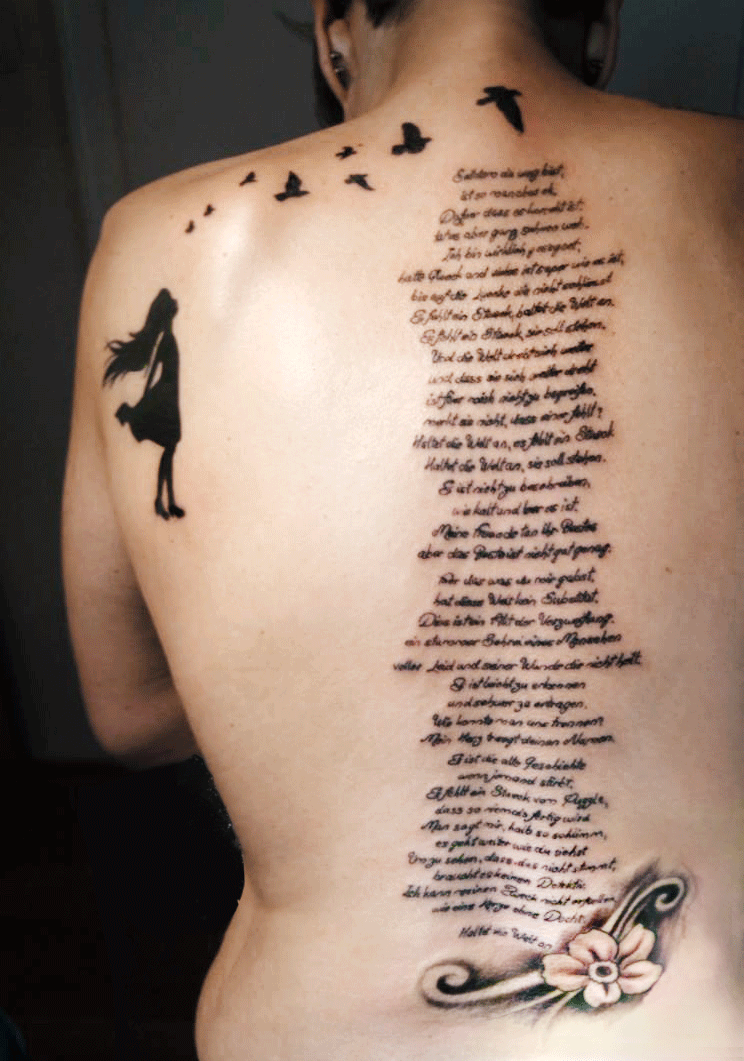 Schöne Schriftzüge sind als Tattoo-Motiv ein echtes Evergreen. Es gibt unzählige Schriftarten und beim Text ist auch Kreativität erlaubt ;)